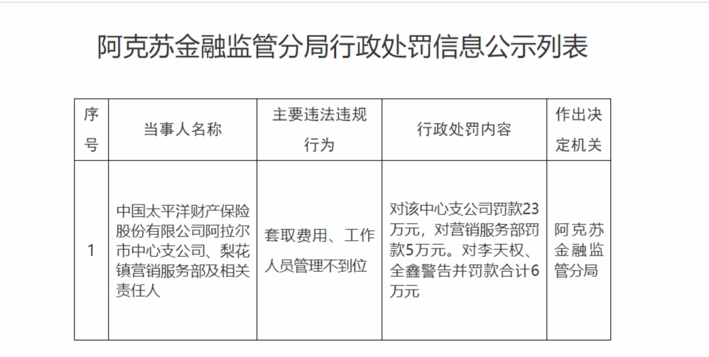 上海正规手机股票配资论坛 太保财险阿拉尔市中心支公司、梨花镇营销服务部合计被罚28万元