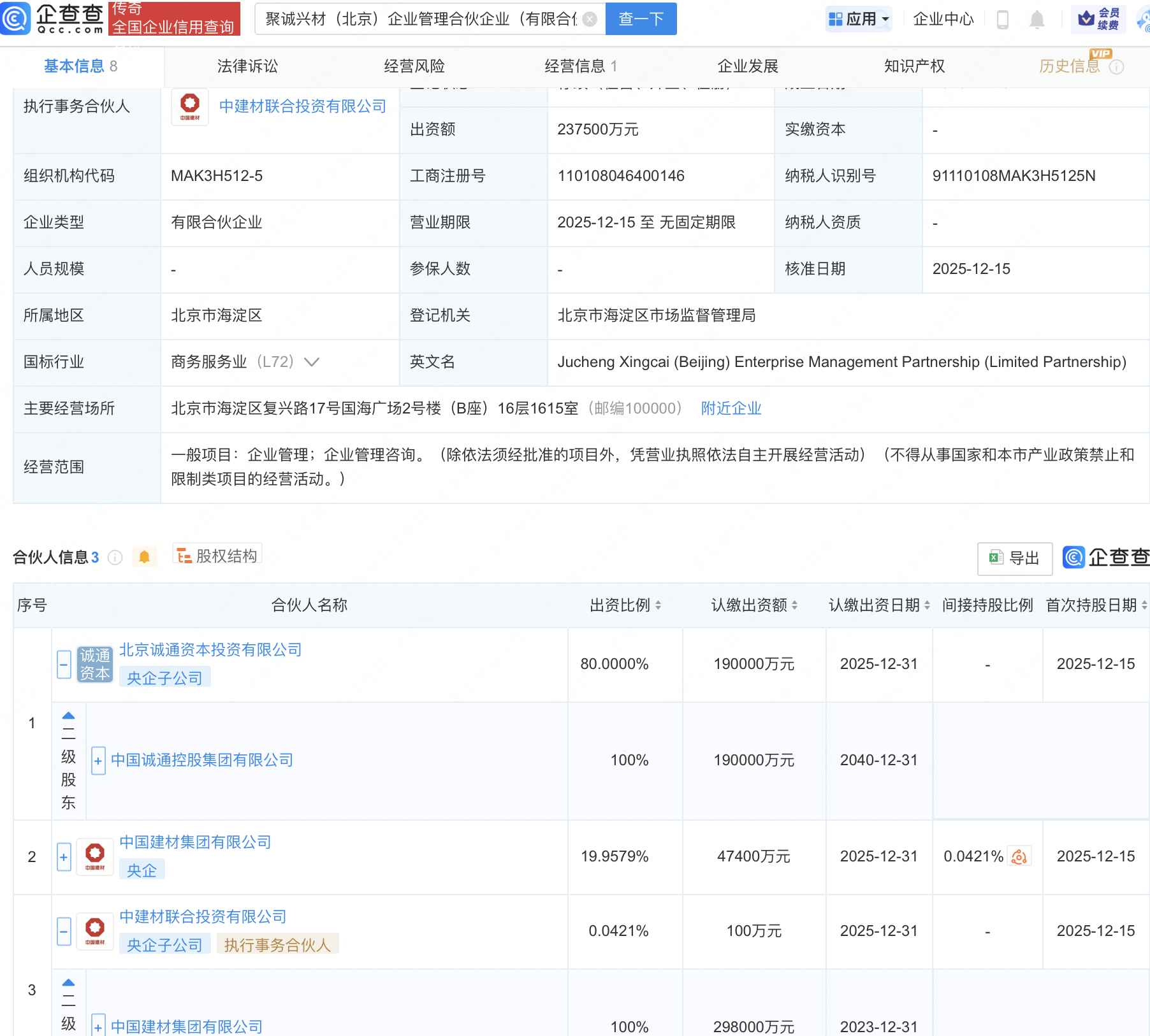 股市配资官方网站首页 中国诚通、中国建材集团成立企管合伙企业,出资额23亿