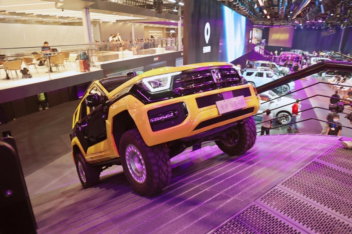 长城汽车联合展台搭建了一个室内越野赛道——大角度陡坡爬升、下降,大角度楼梯攀爬,这些平时只能在户外看到的越野场景,被搬进了展馆。观众可以近距离看车怎么爬上去、怎么稳稳下来。这种“在车展室内玩越野”的体验,以前不多见。越野文化不再是屏幕里的画面,而是触手可及的现场感受。